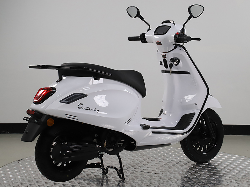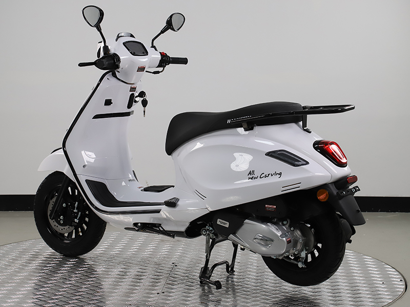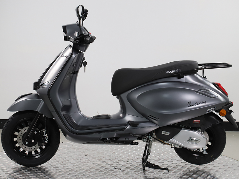 올 뉴 카빙(All New Carving)은 한국모터스가 2026년 야심차게 선보이는 신형 모델로, 뛰어난 연비와 합리적인 가격을 동시에 갖춘 캐주얼 스쿠터입니다. 정속 주행 기준 50km/ℓ의 우수한 연비 효율을 자랑하며, 가격 대비 높은 품질로 극강의 가성비를 제공합니다. 부업용은 물론 가벼운 출퇴근과 데일리 이동 수단으로 활용도가 뛰어나며, 770mm의 낮은 시트고로 누구나 부담 없이 편안한 주행이 가능합니다. CBS 연동 브레이크 시스템을 적용해 안정적인 제동 성능을 확보했고, 9.5L의 넉넉한 연료 탱크로 주유 빈도에 대한 걱정도 줄였습니다. 여기에 클래식한 스쿠터 디자인의 감성까지 더해, 실용성과 스타일을 모두 만족시키는 스마트한 선택이 될 것입니다.